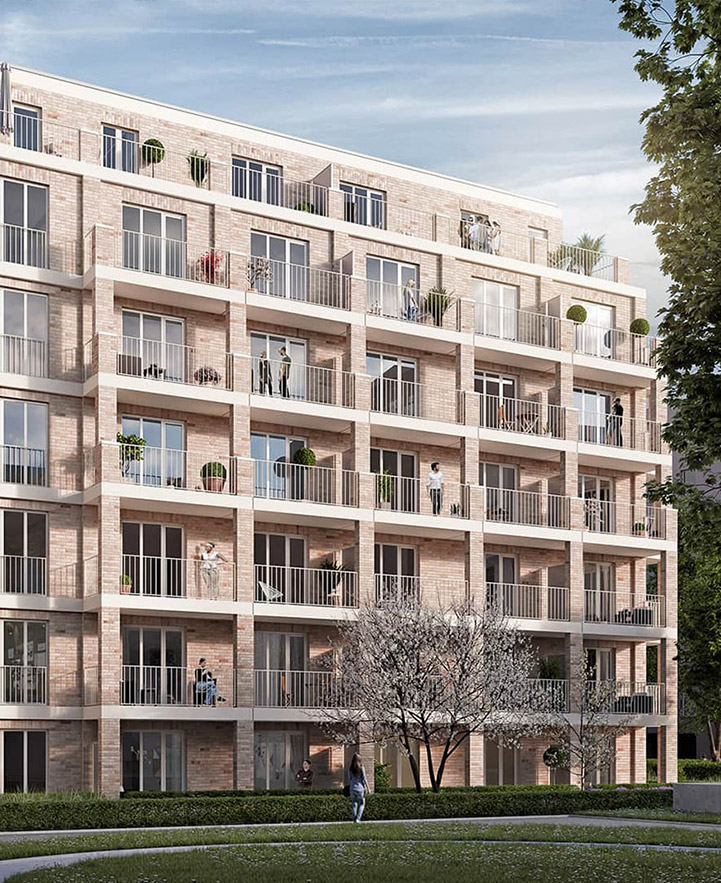 Mitten in Berin, im umtriebigen Kreuzberg, befindet sich die Eigentumswohnung, zurückgezogen und von prunkvollen Fassaden umgeben, in Riehmers Hofgärten. Das Hofgartenhaus wird 2024 fertiggestellt.
